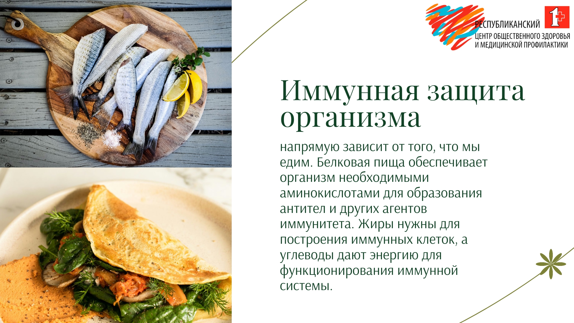- Иммунная защита организма напрямую зависит от того, что мы едим. Белковая пища обеспечивает организм необходимыми аминокислотами для образования антител и других агентов иммунитета. Жиры нужны для построения иммунных клеток, а углеводы дают энергию для функционирования иммунной системы.